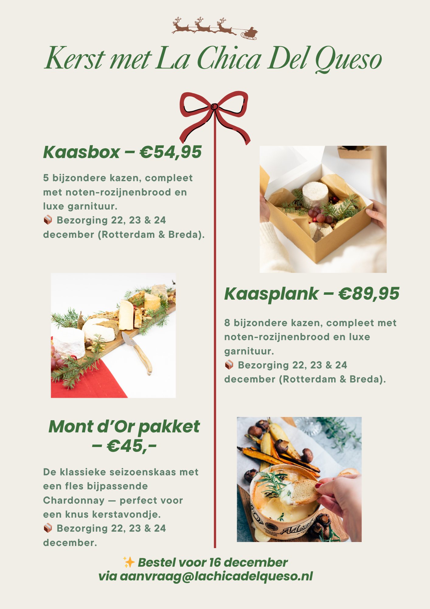 Bestel de mooiste kazen voor de feestdagen, Bezorging tussen Breda en Rotterdam op 22, 23 en 24 december.